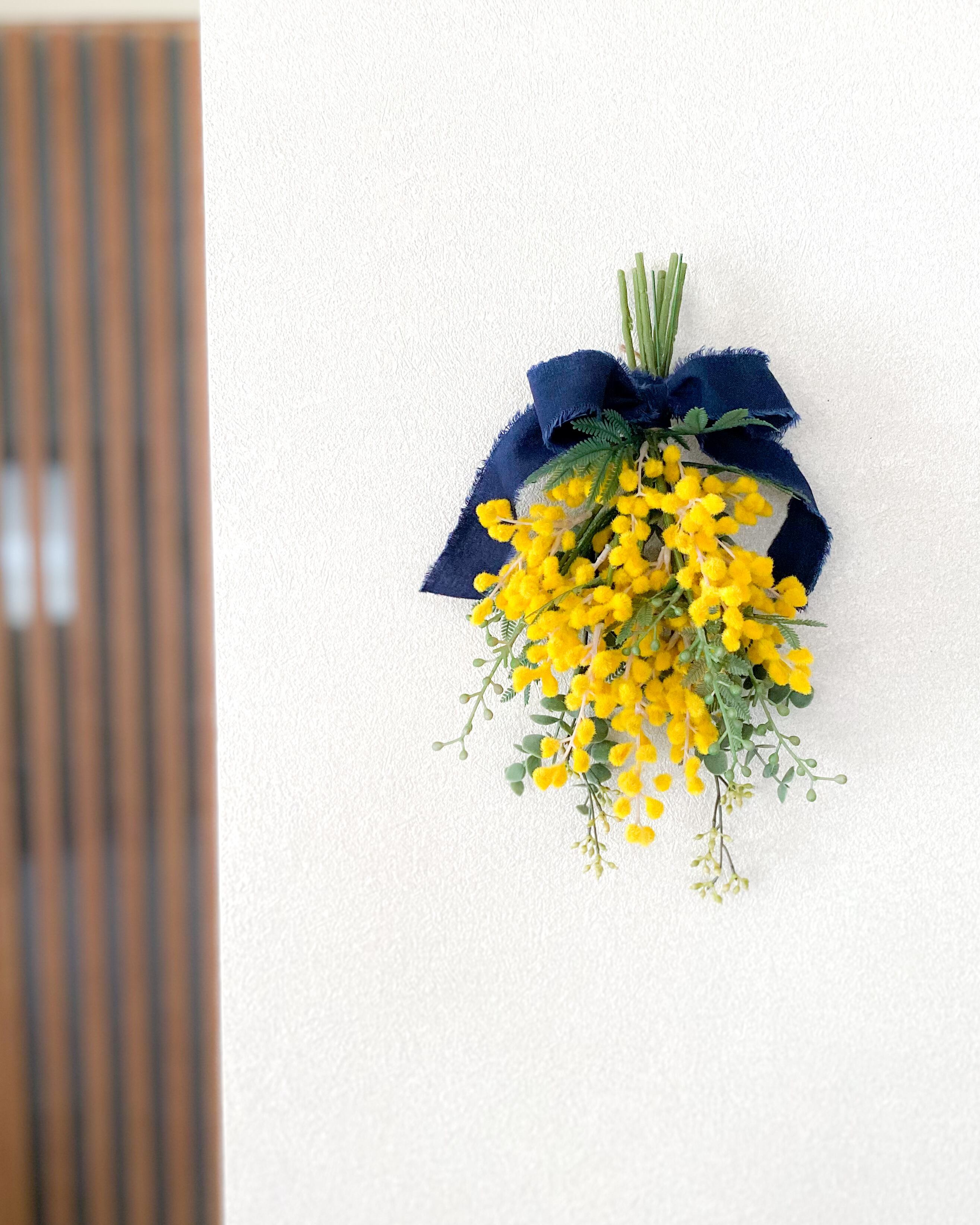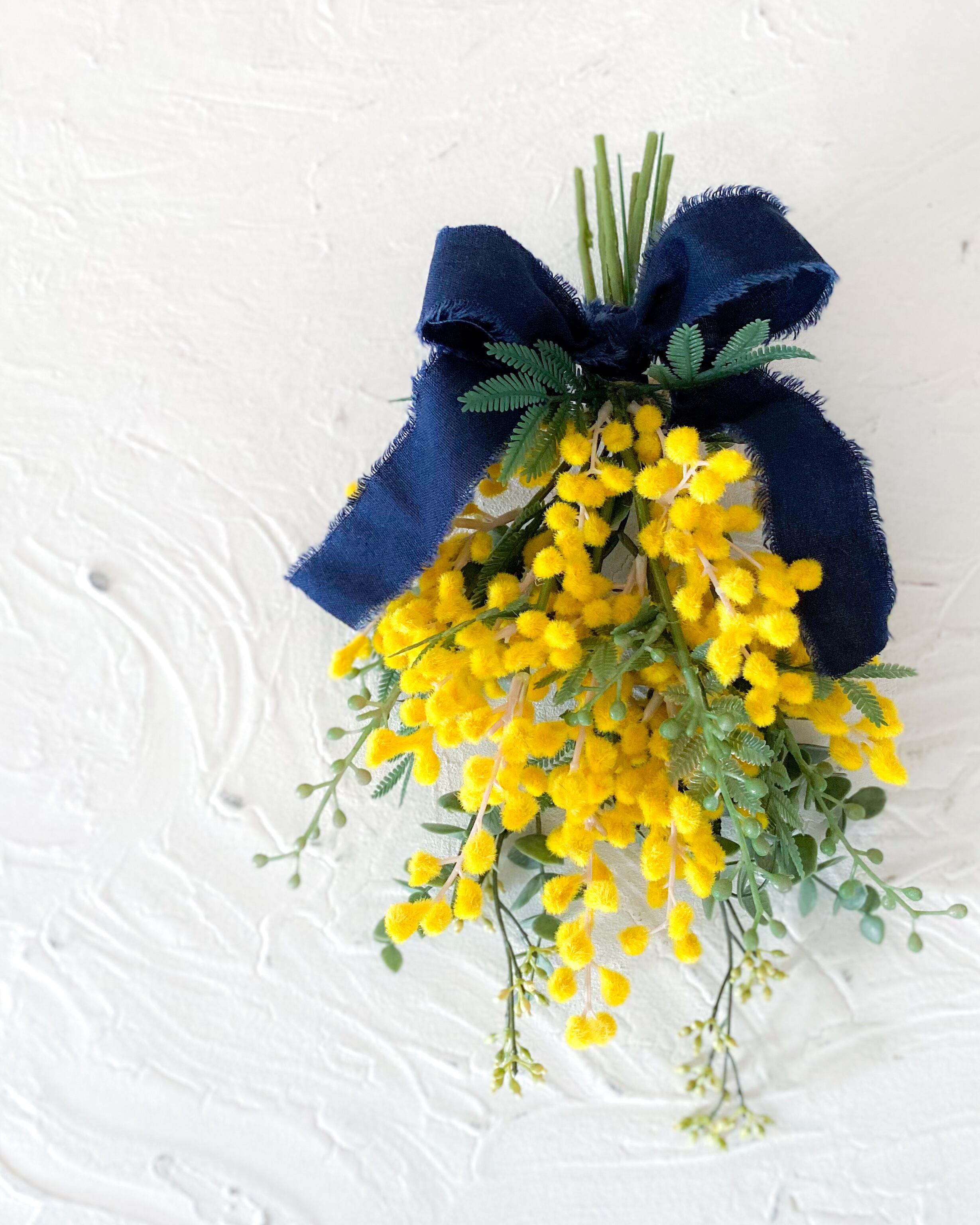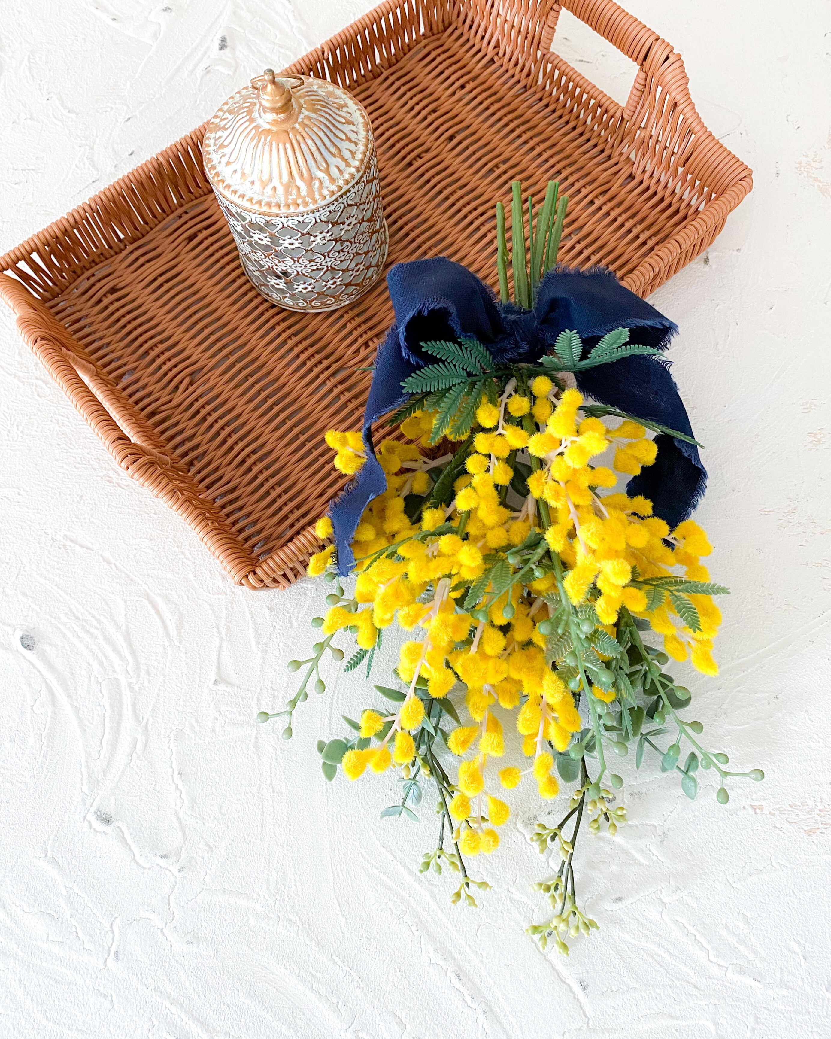 明るく、元気が貰えそうなイエローのミモザが映えるよう