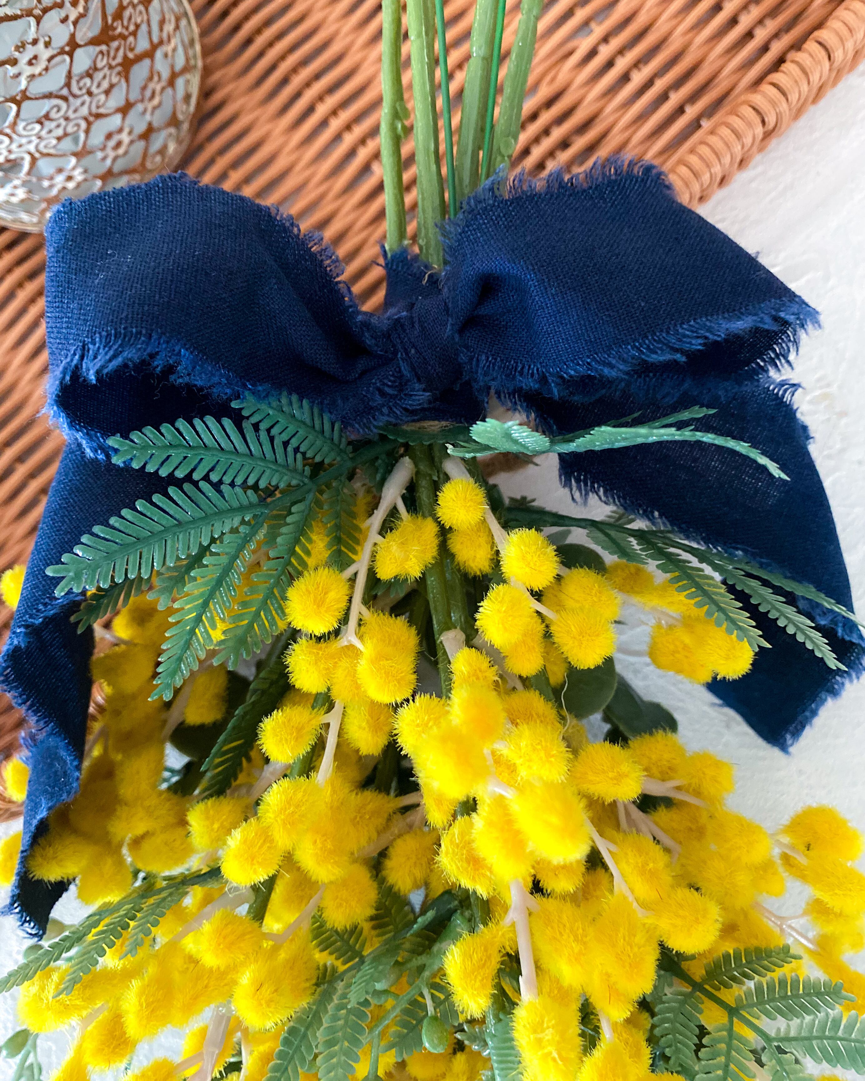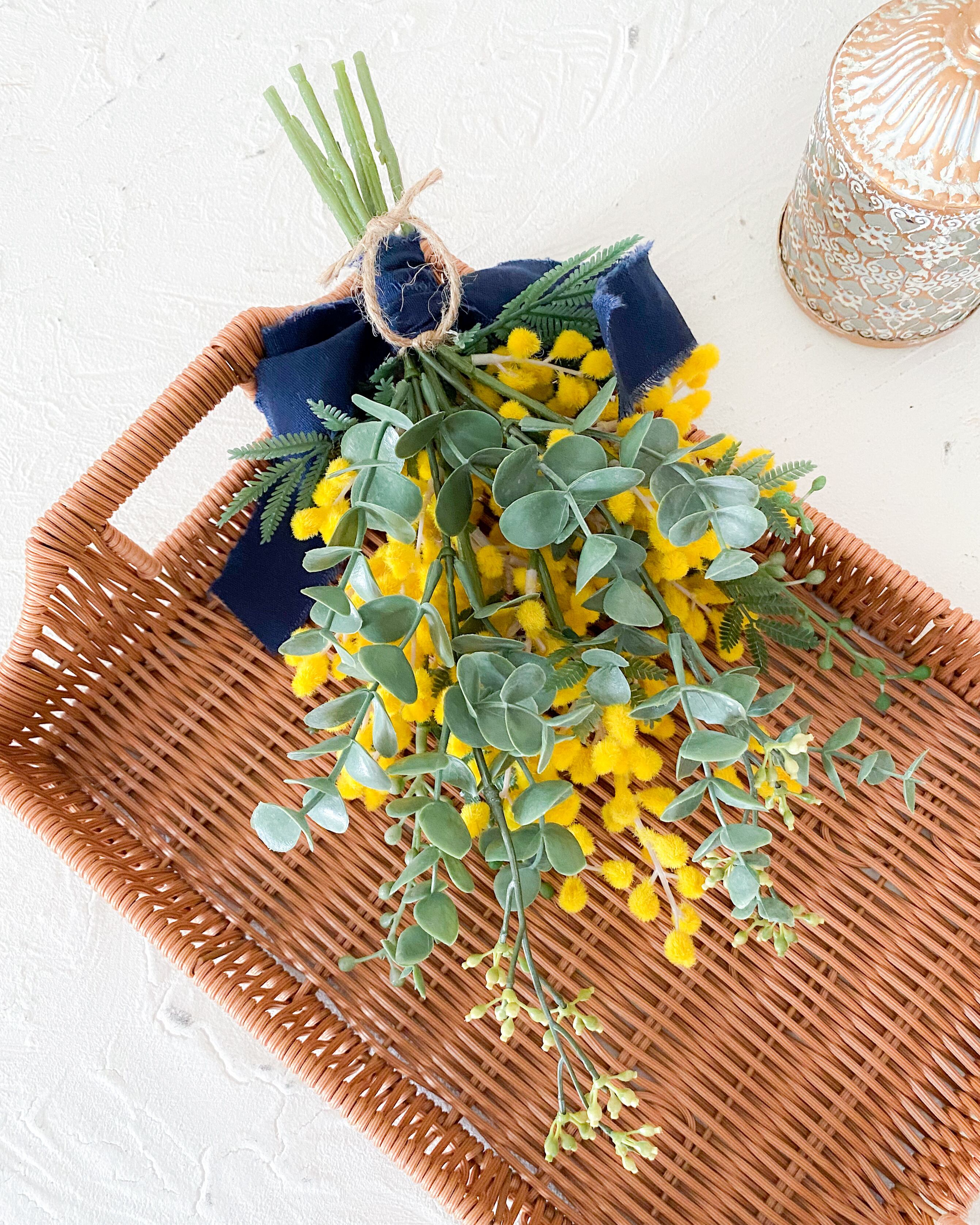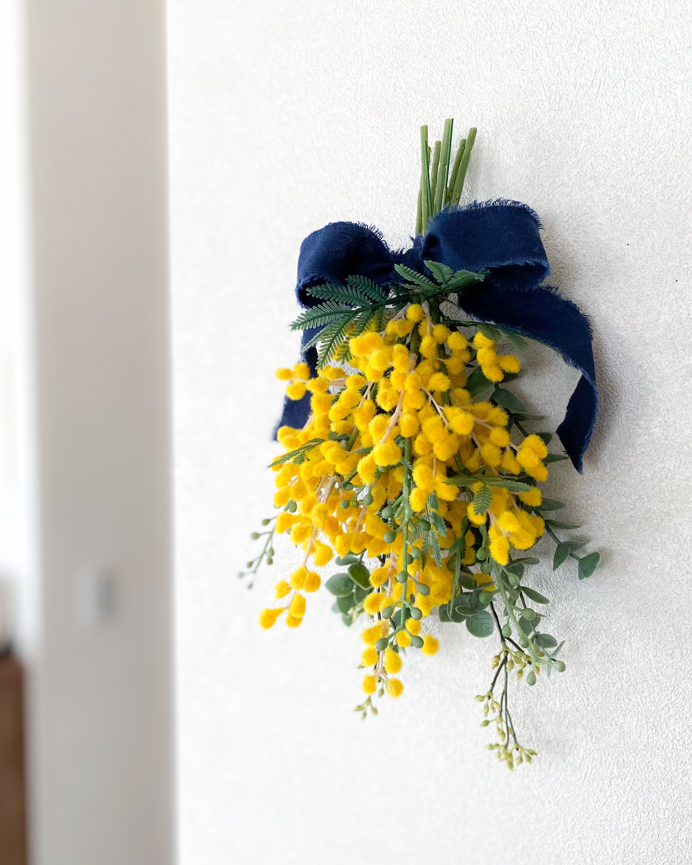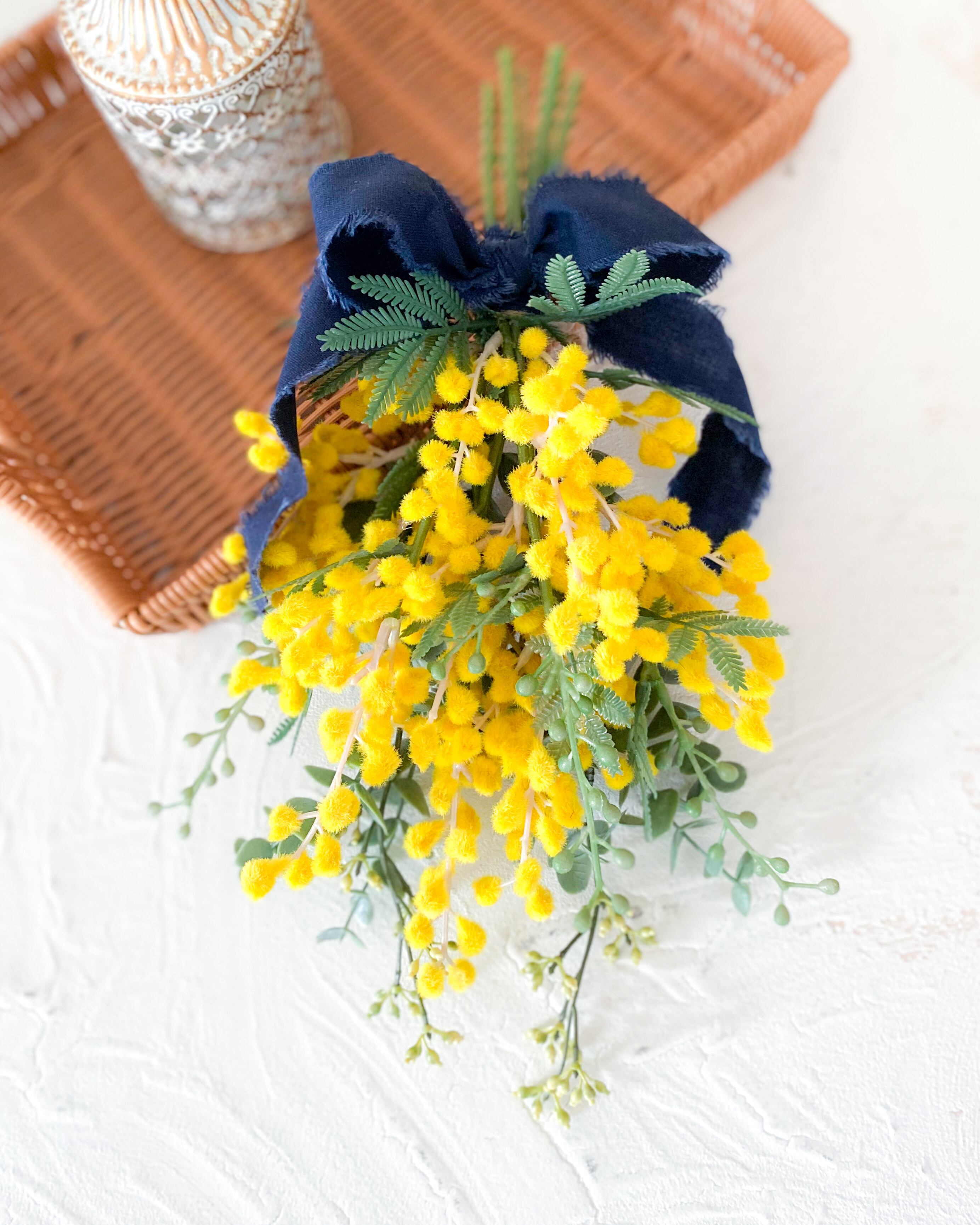 明るく、元気が貰えそうなイエローのミモザが映えるよう