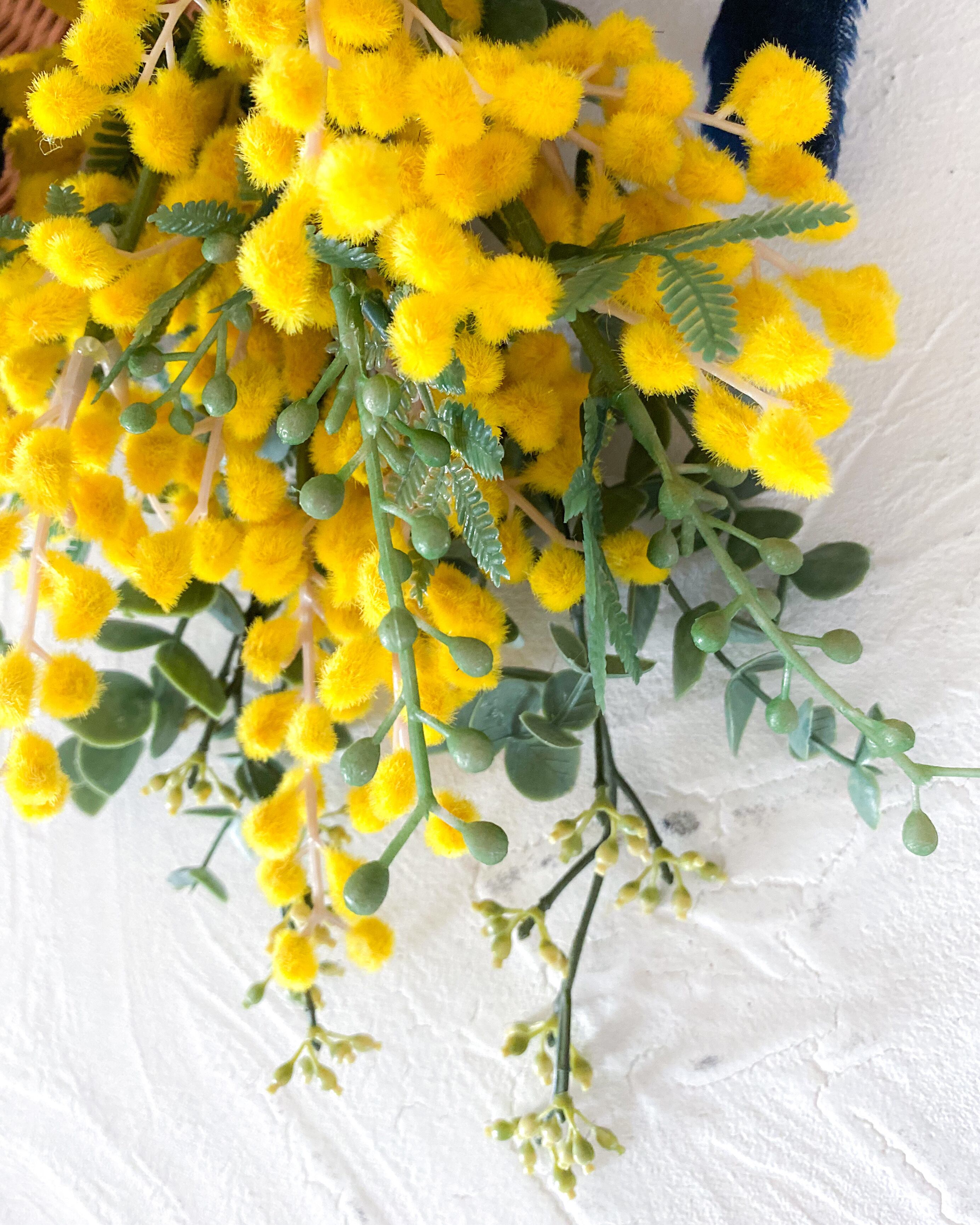 高品質な造花、アーティフィシャルフラワーのミモザをたっぷりと使い、