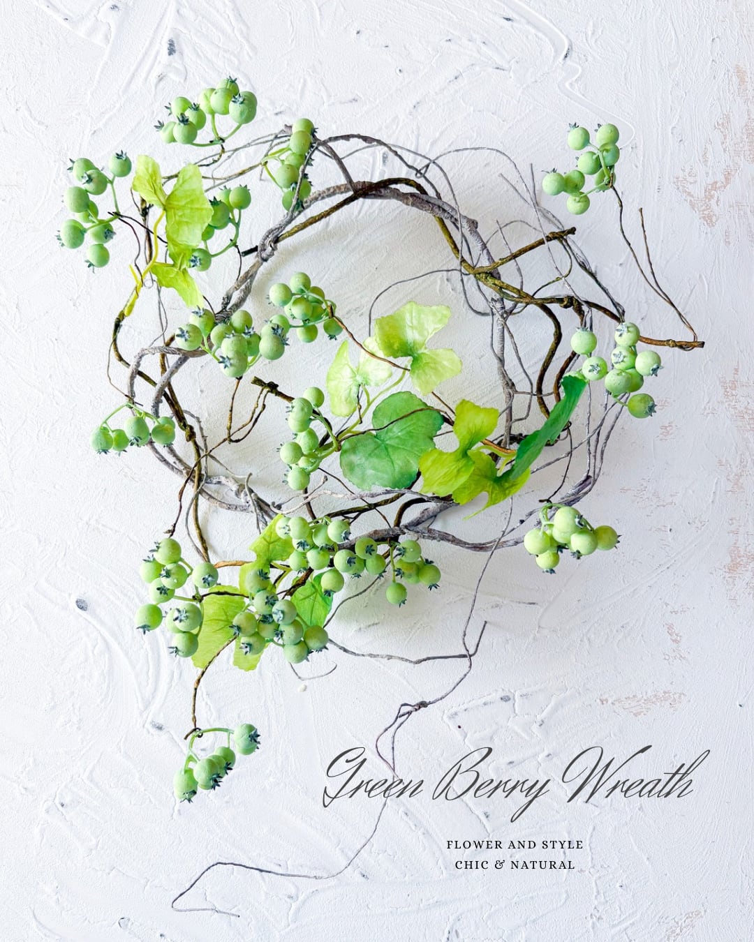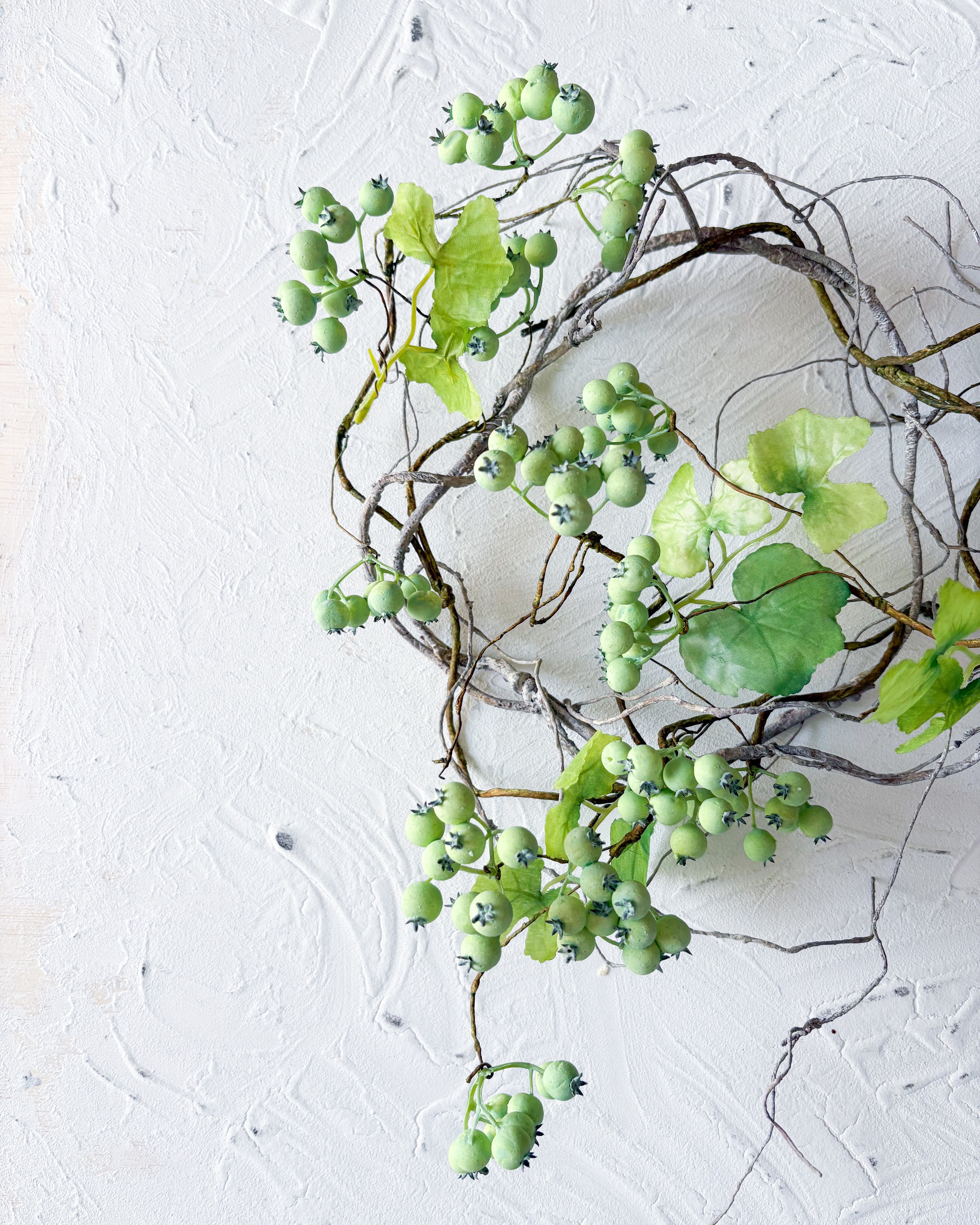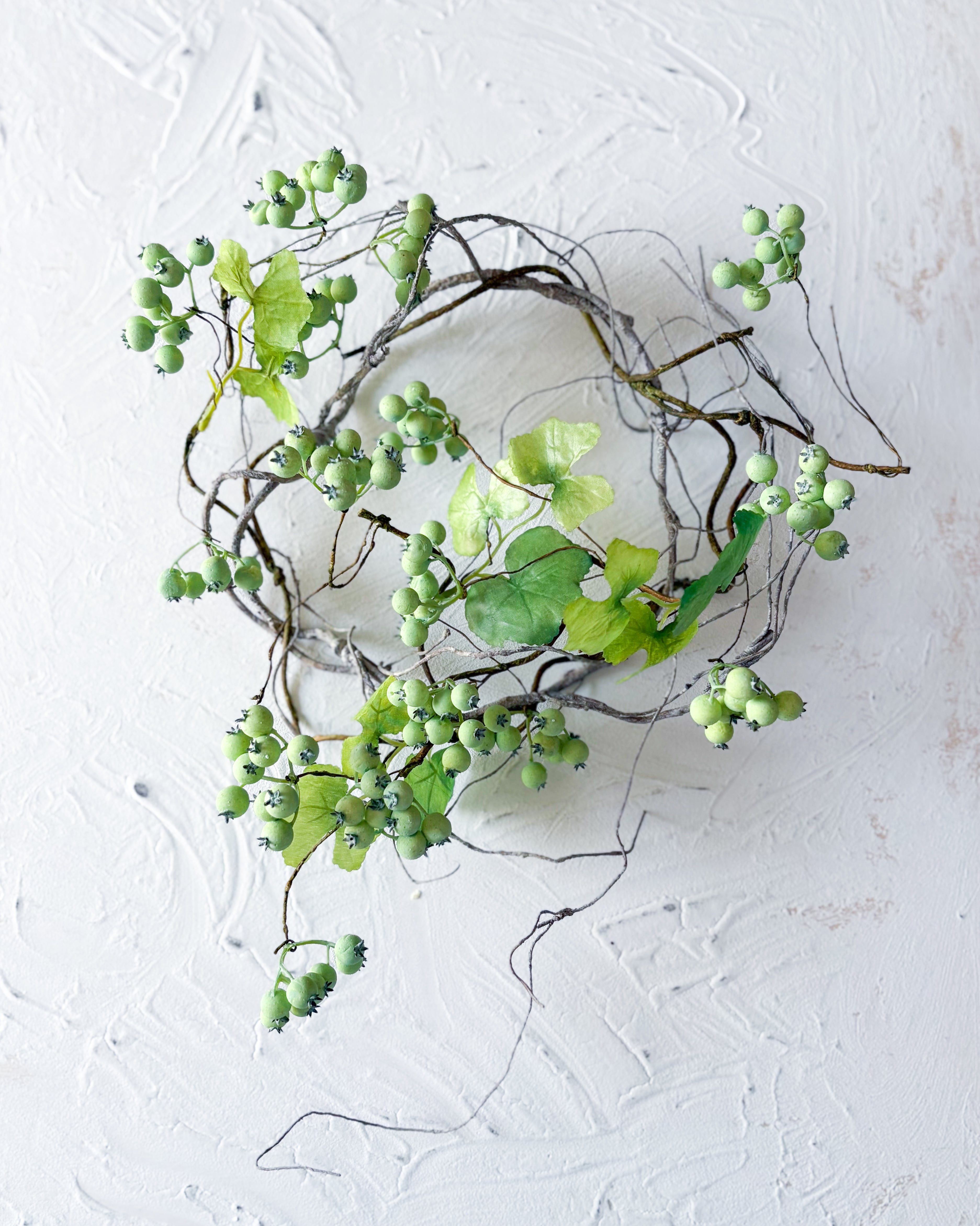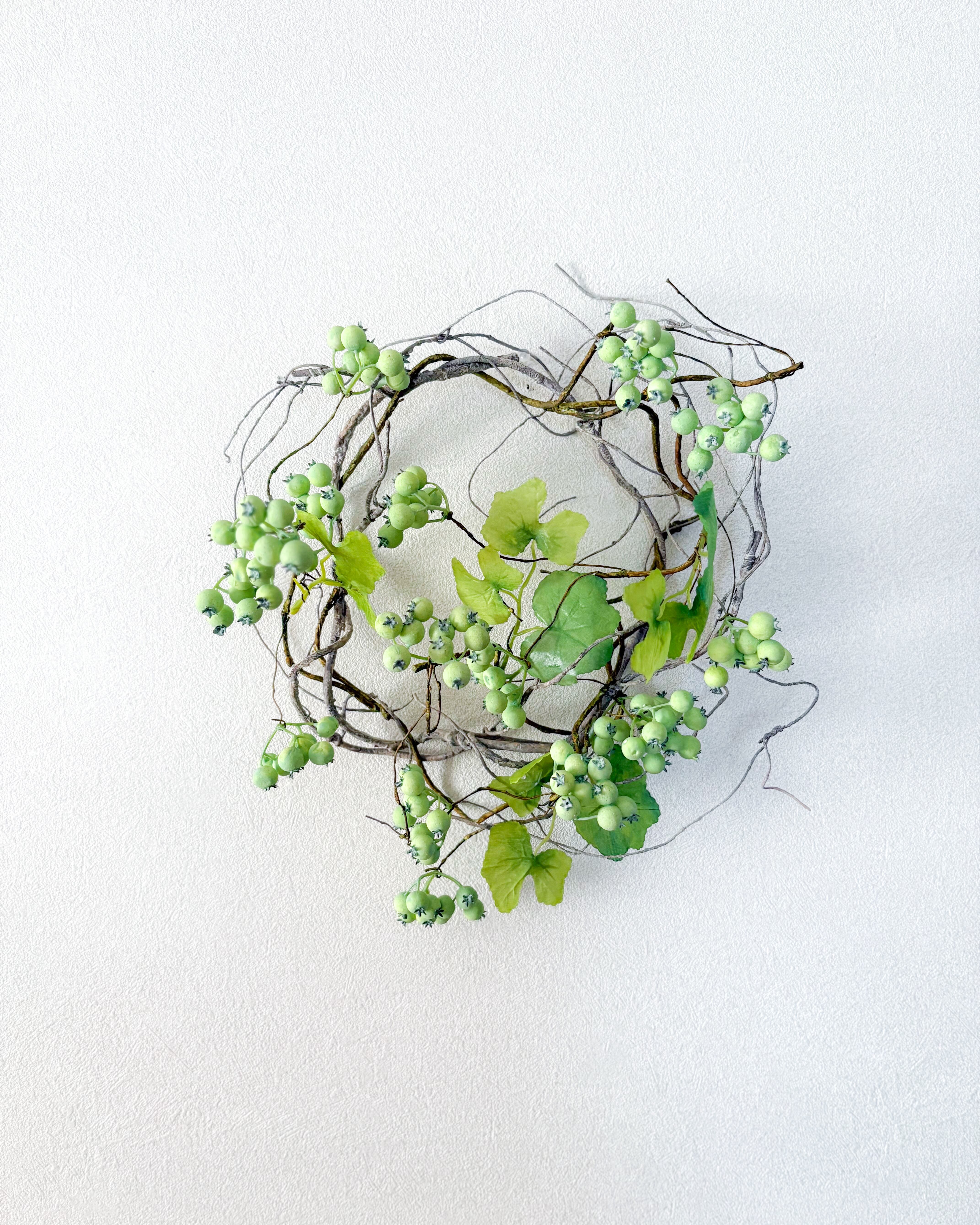アーティフィシャルの枝とライトグリーンのベリーを絡め合わせて、