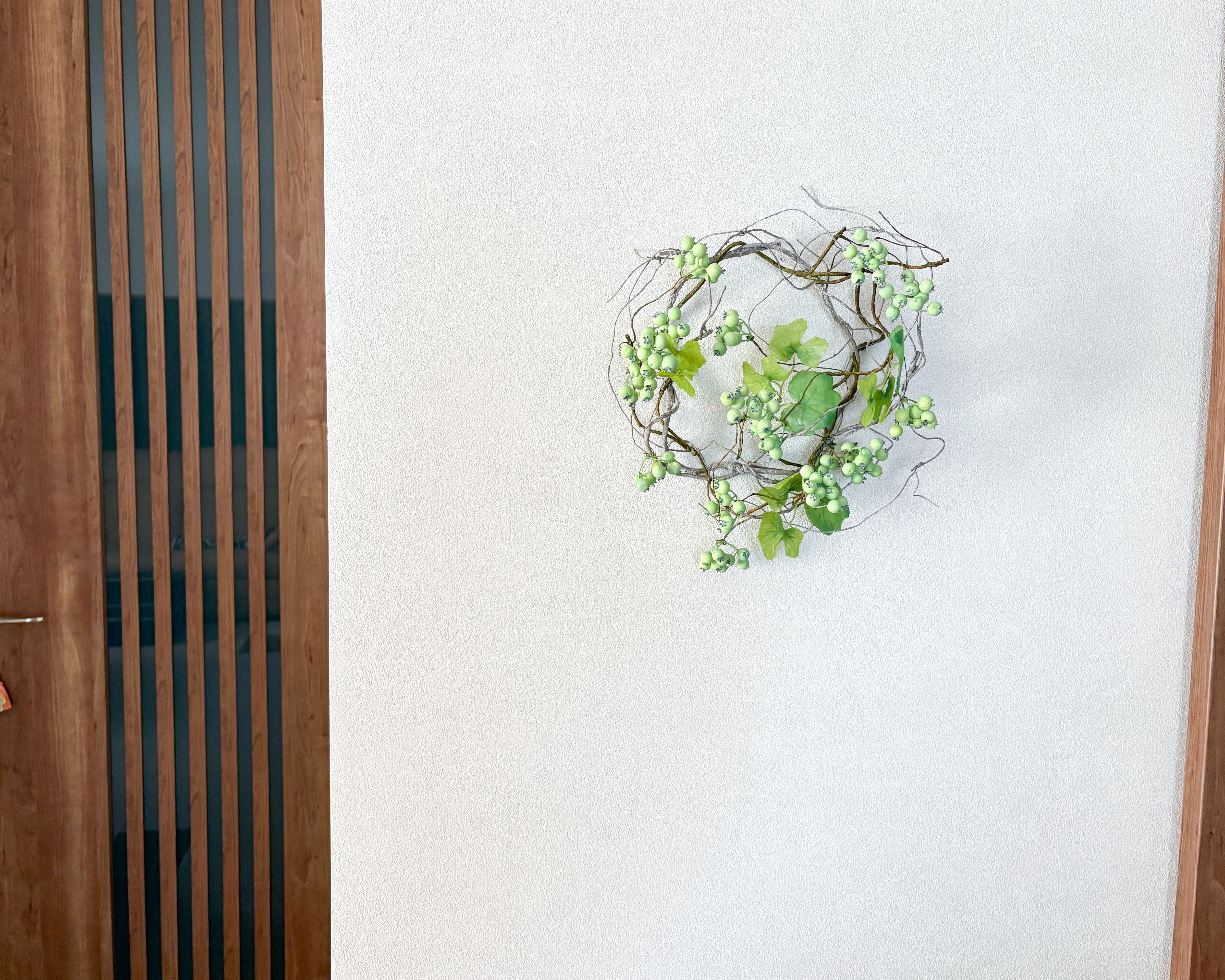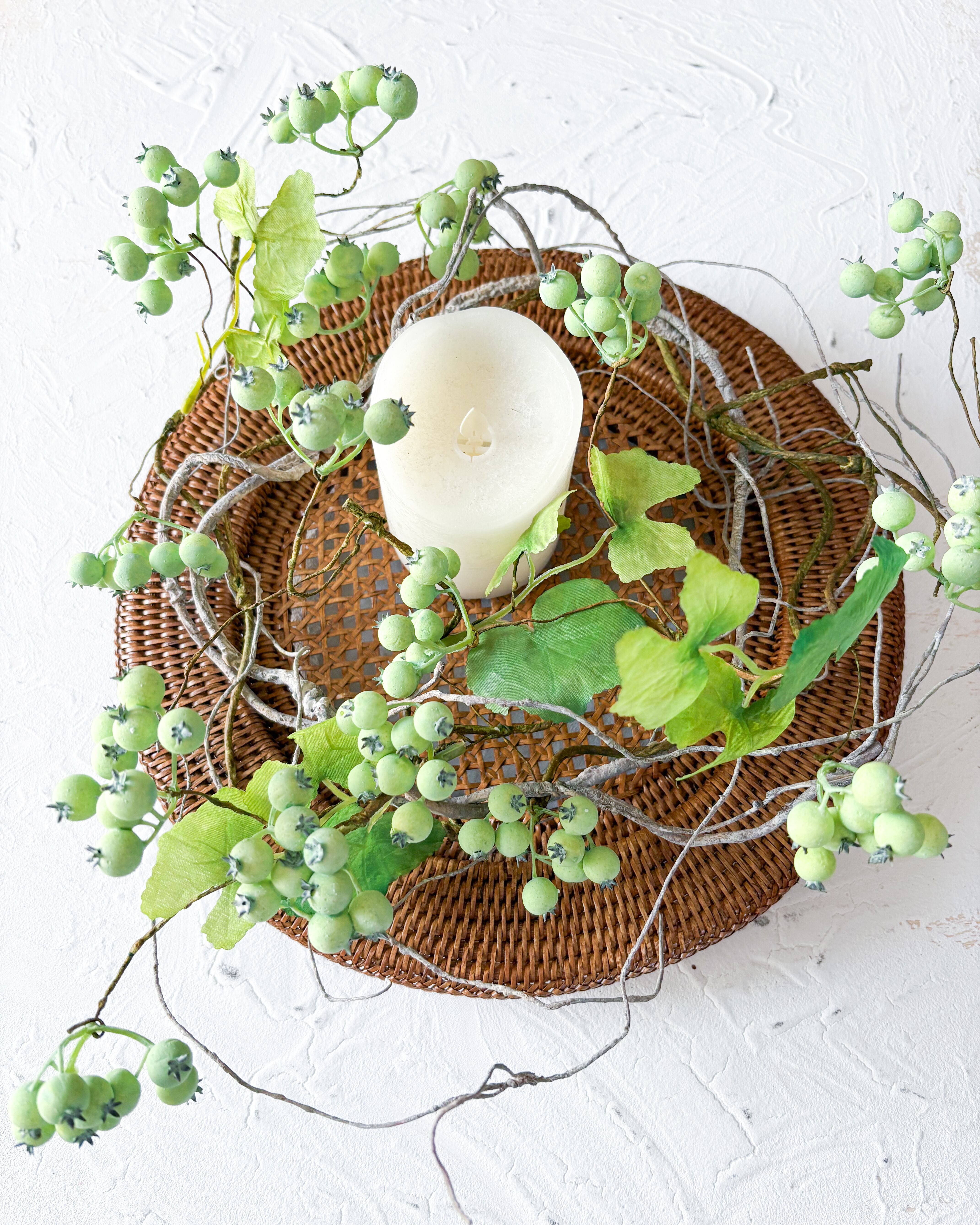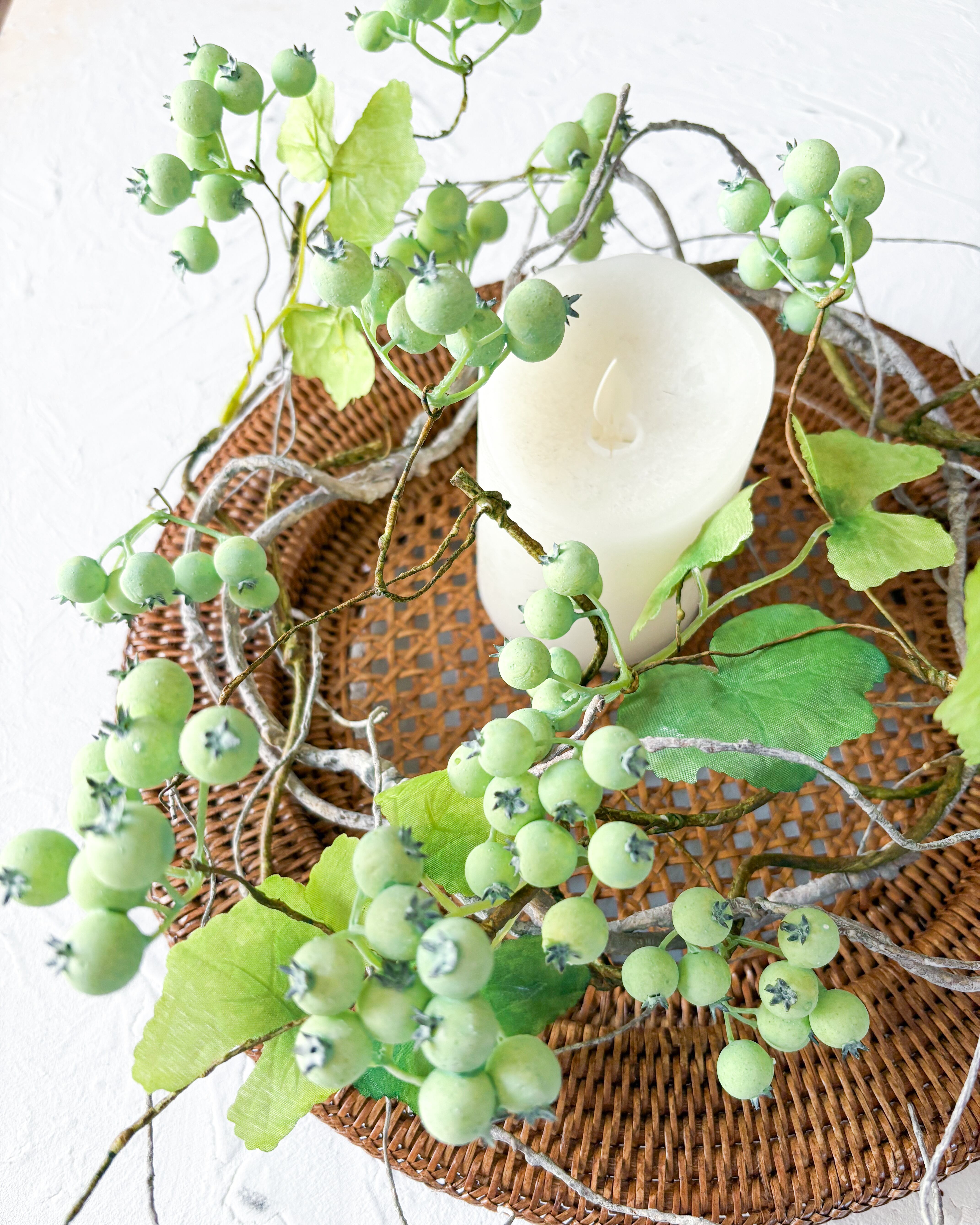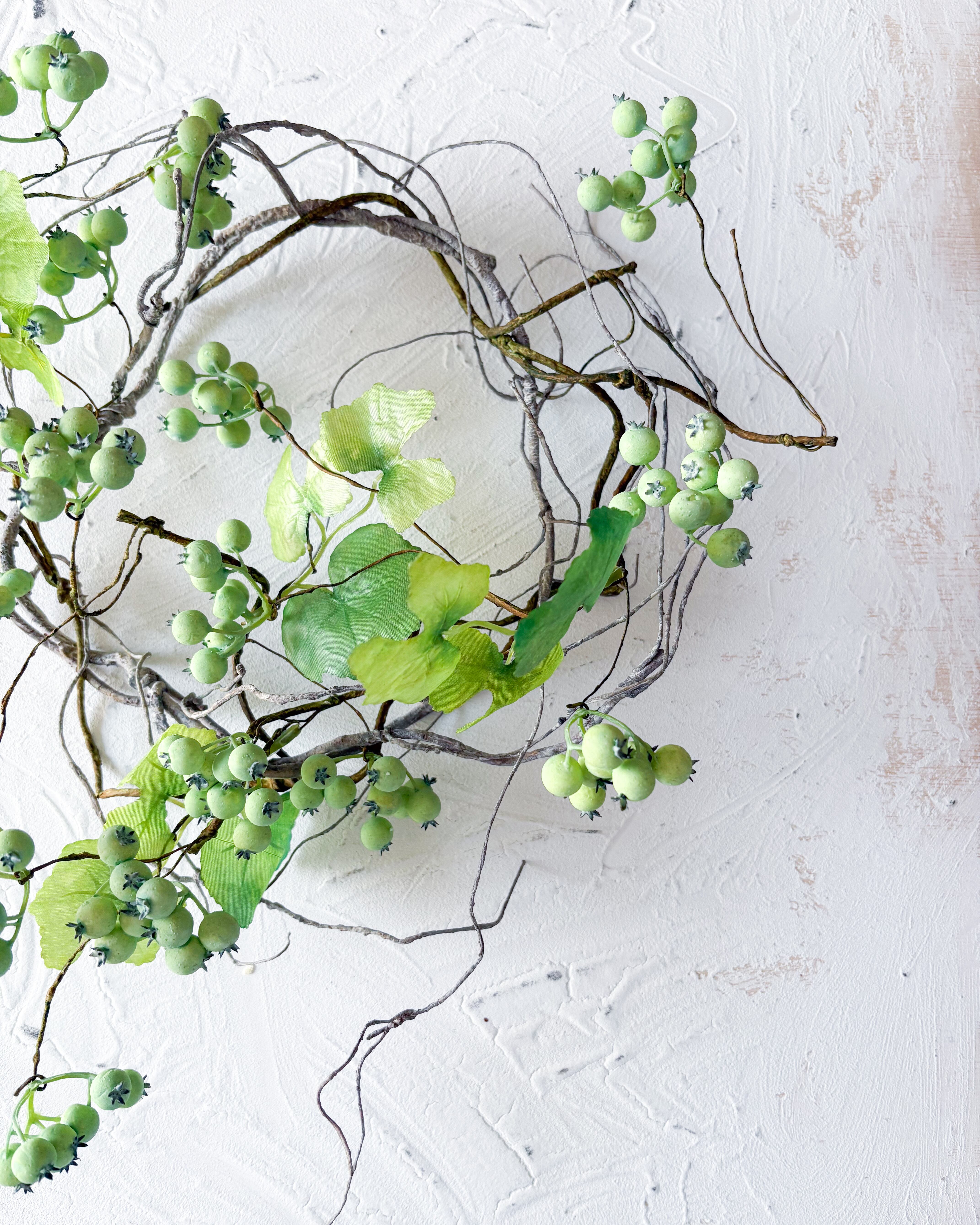 アーティフィシャルの枝とライトグリーンのベリーを絡め合わせて、