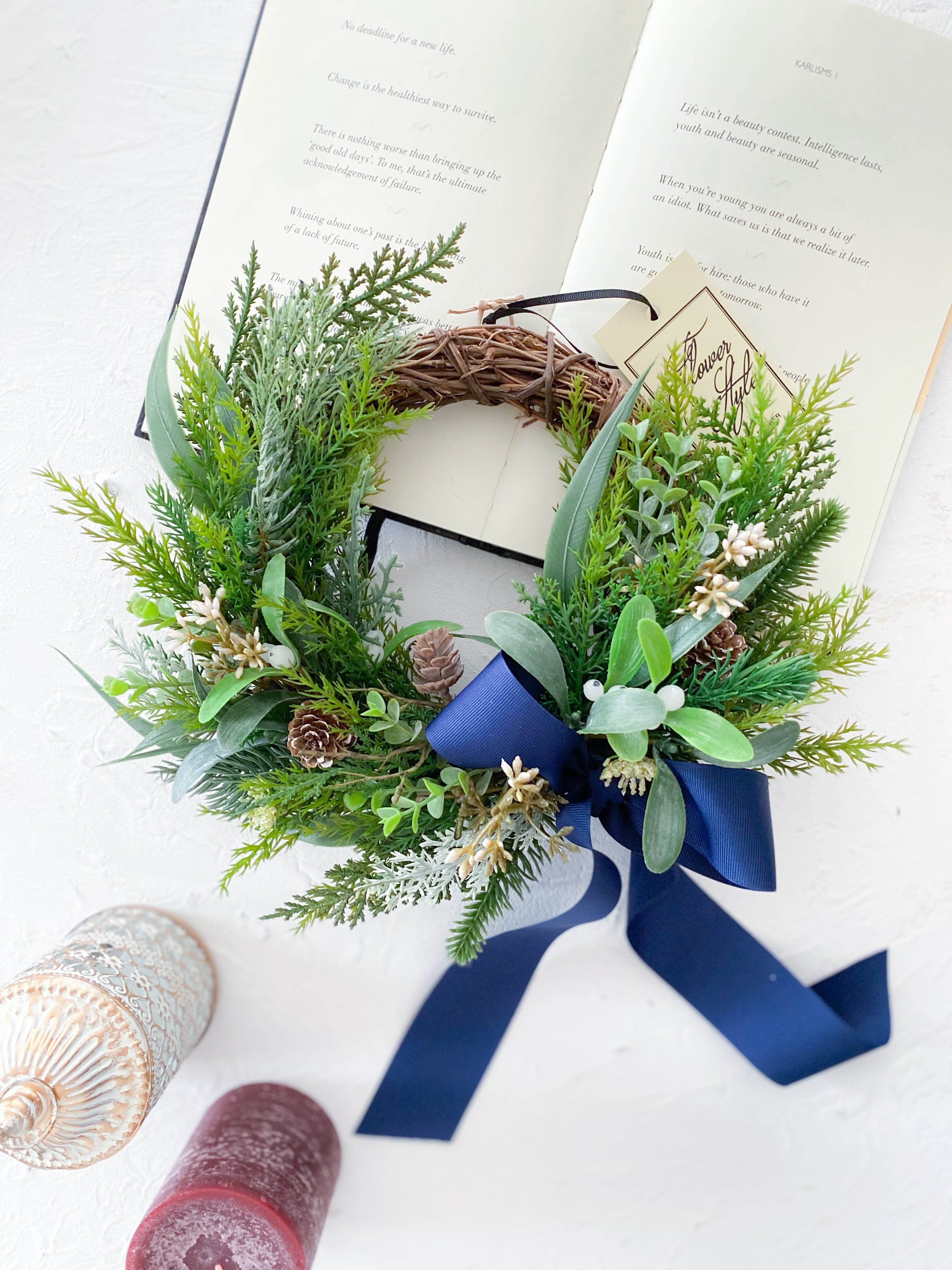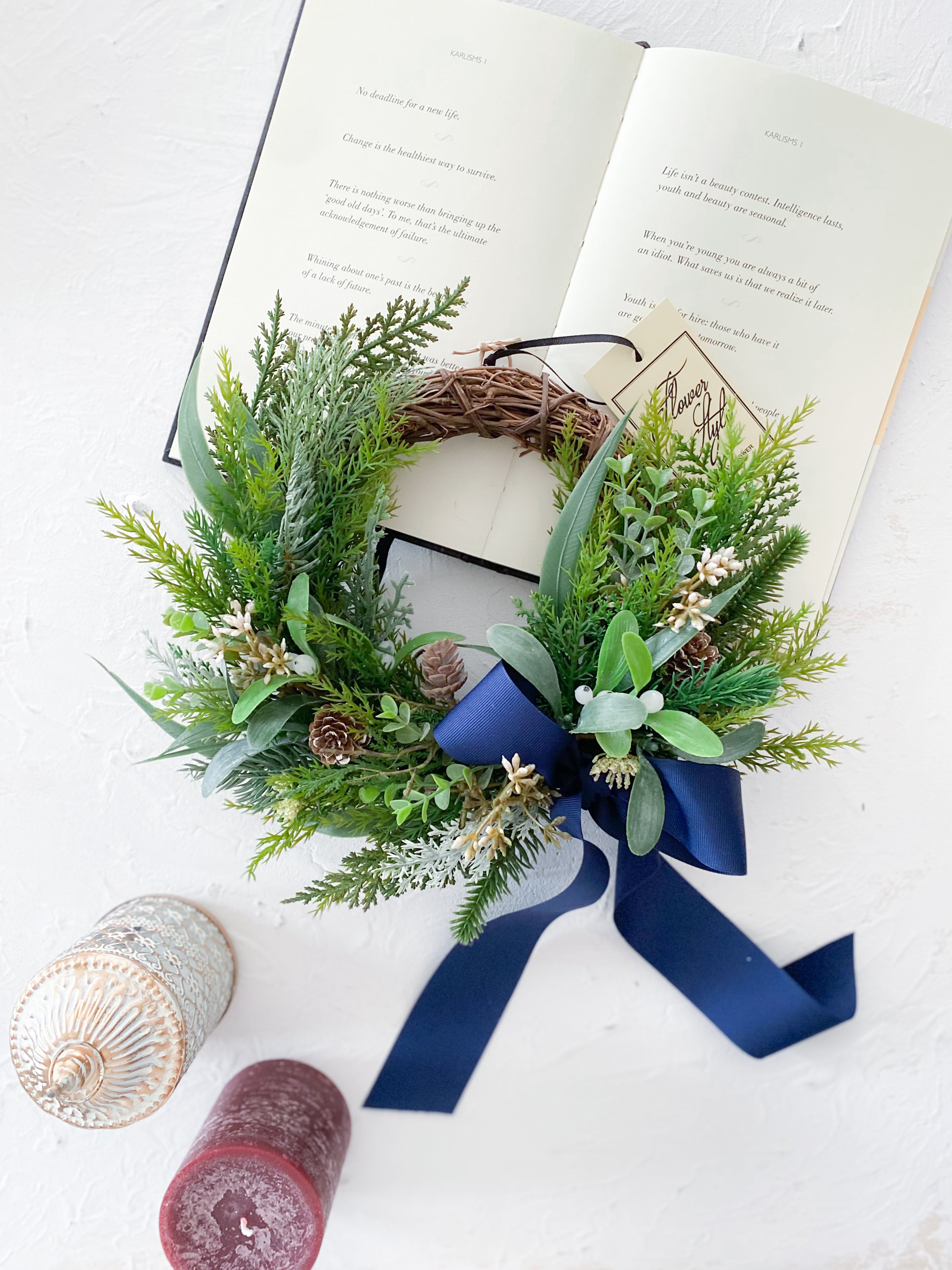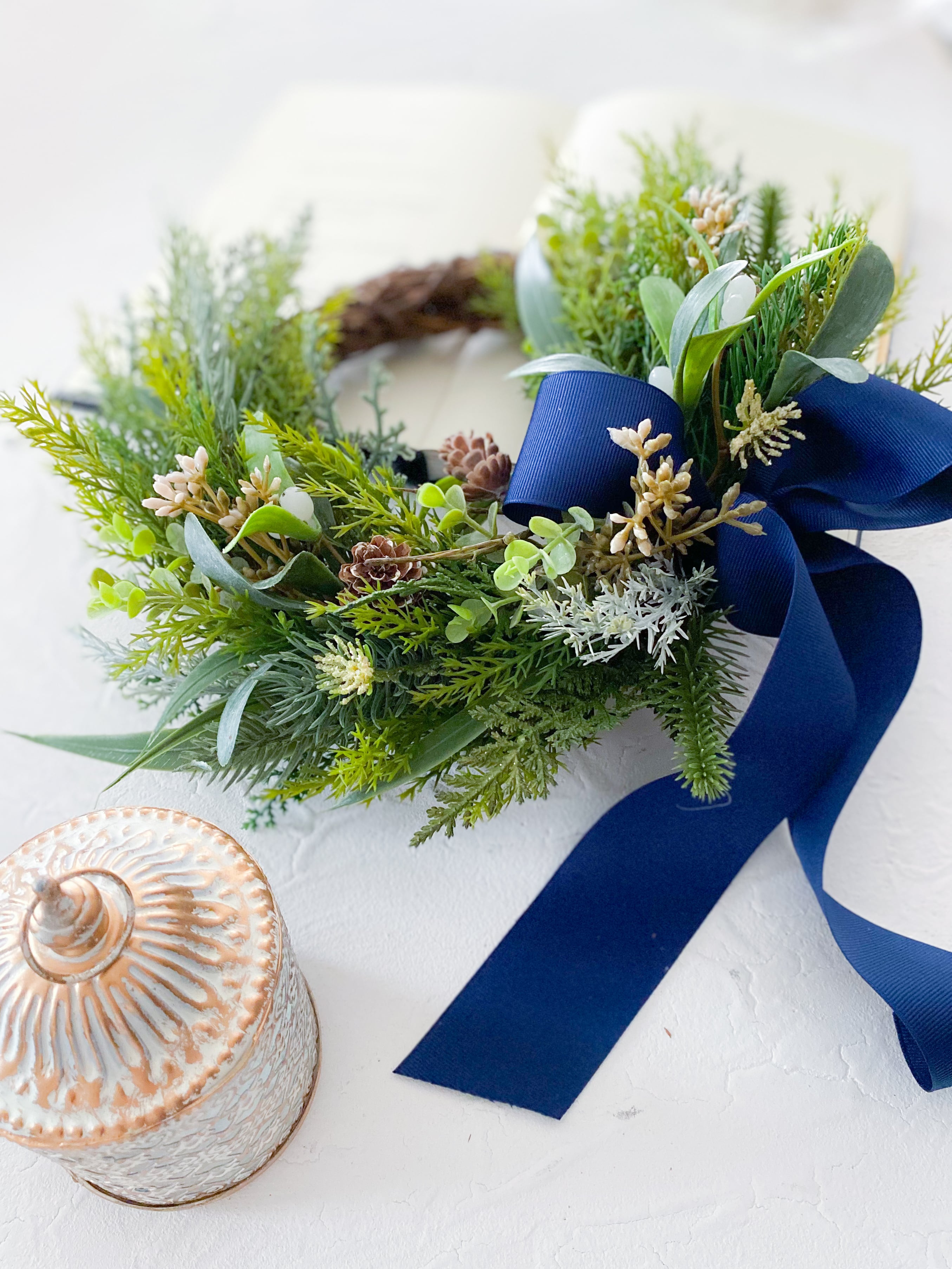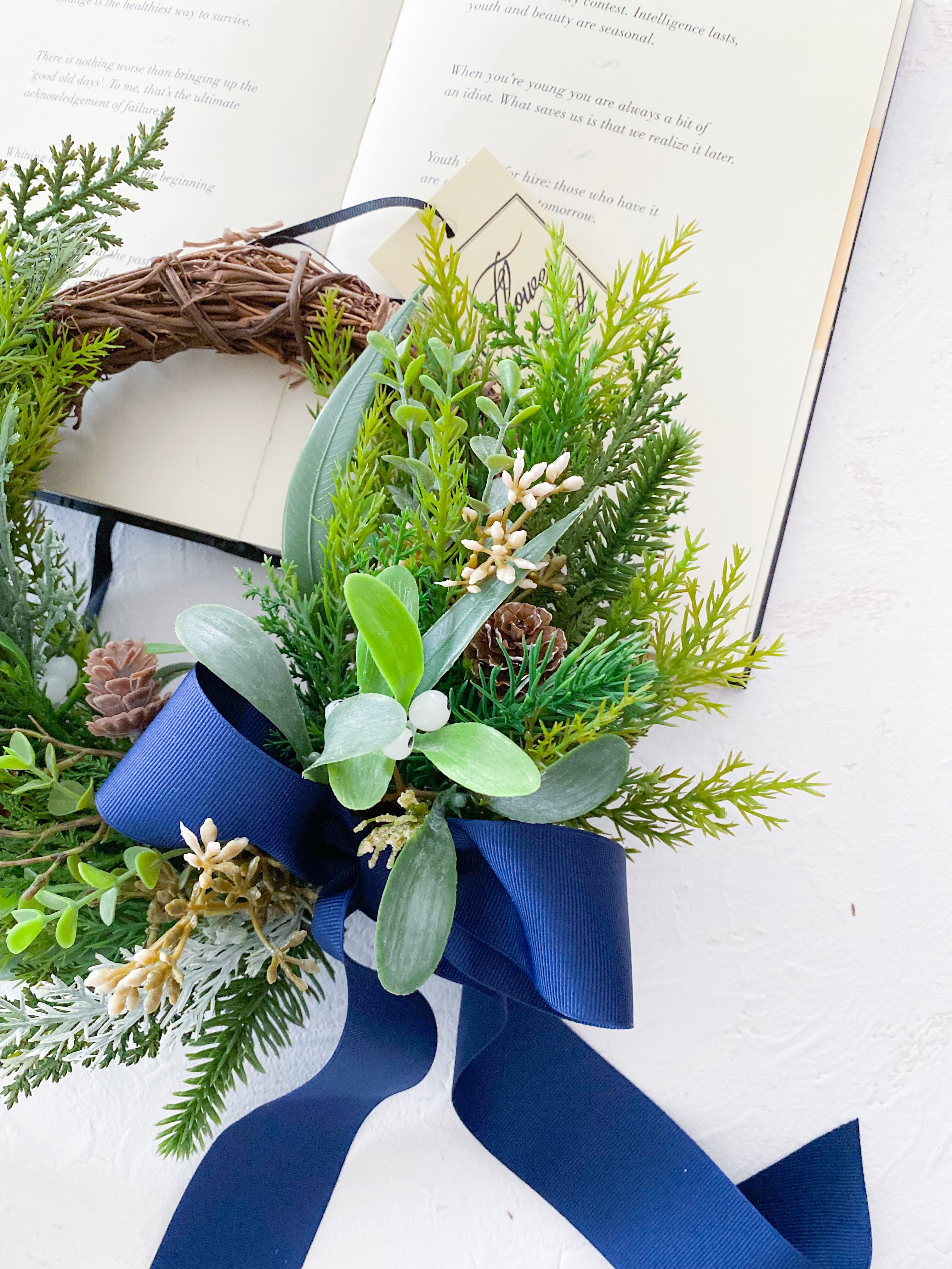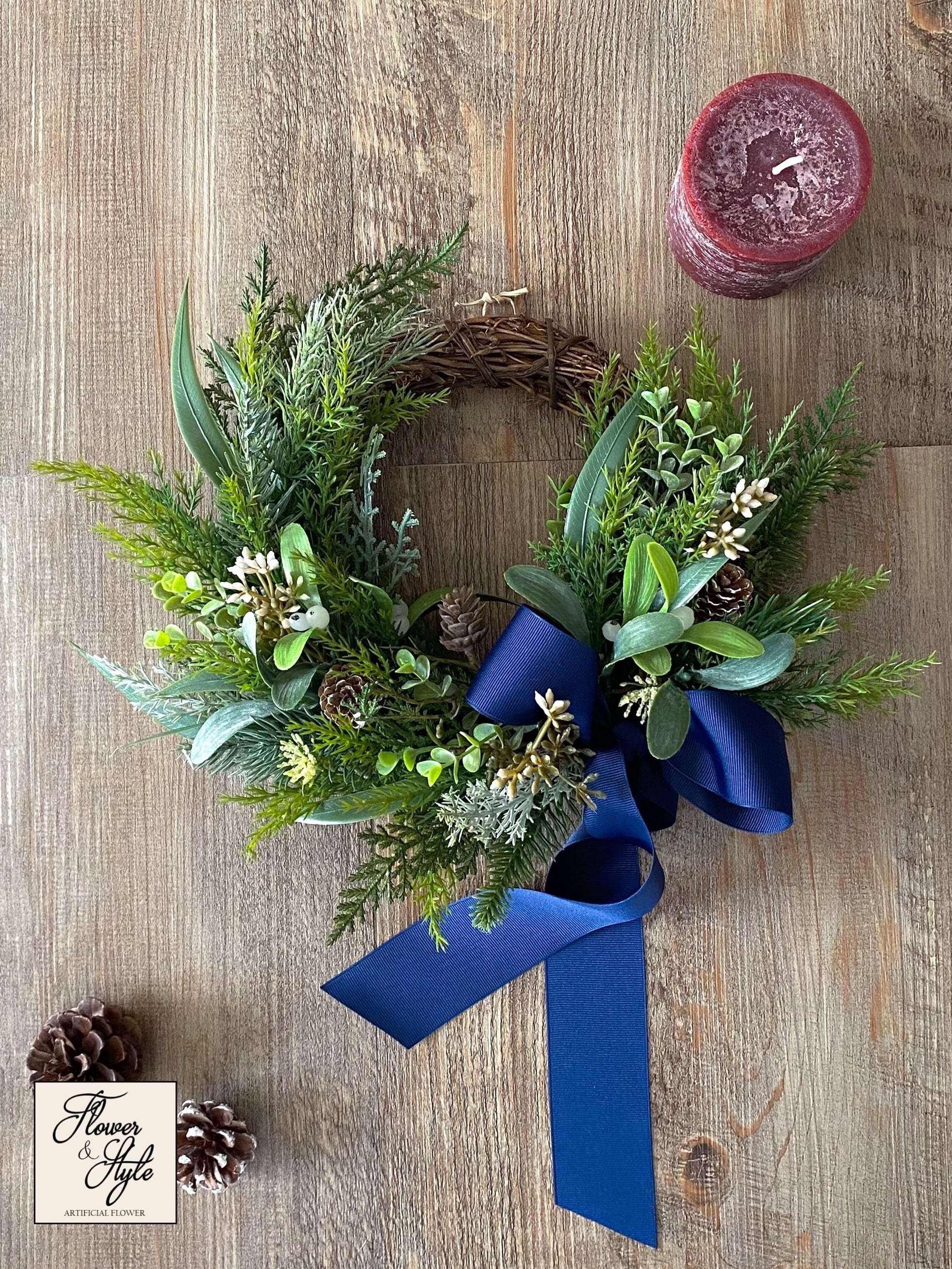 秋冬を想わせる様々な針葉樹の葉や、ヤドリギなど