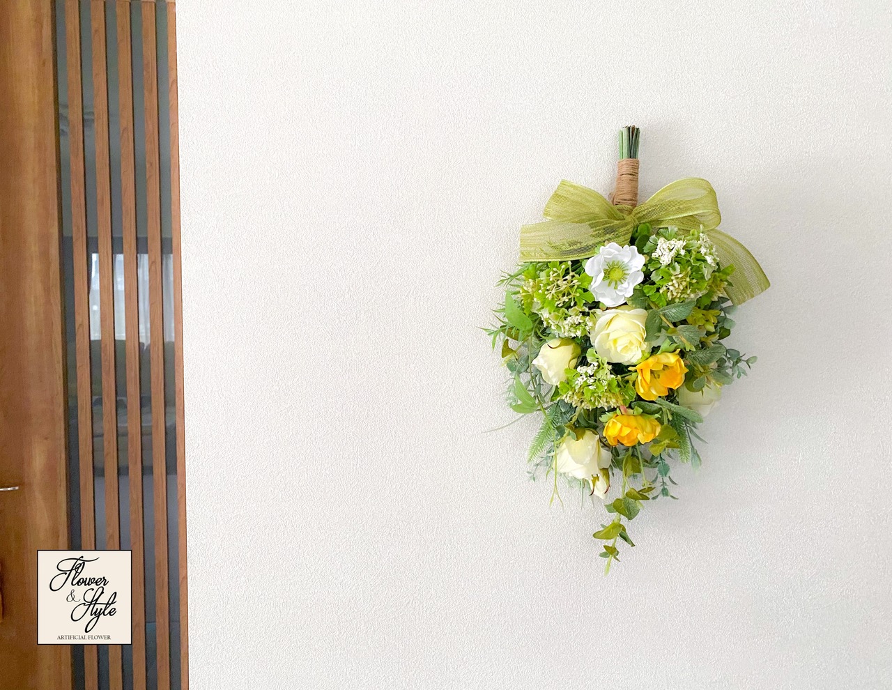 明るいさ、爽やかさ、清潔感などを感じられるこのスワッグは