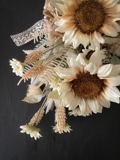 【使用花材】ひまわり(2種)、セミドライ風アジサイ、ウィート、エリンジウム、