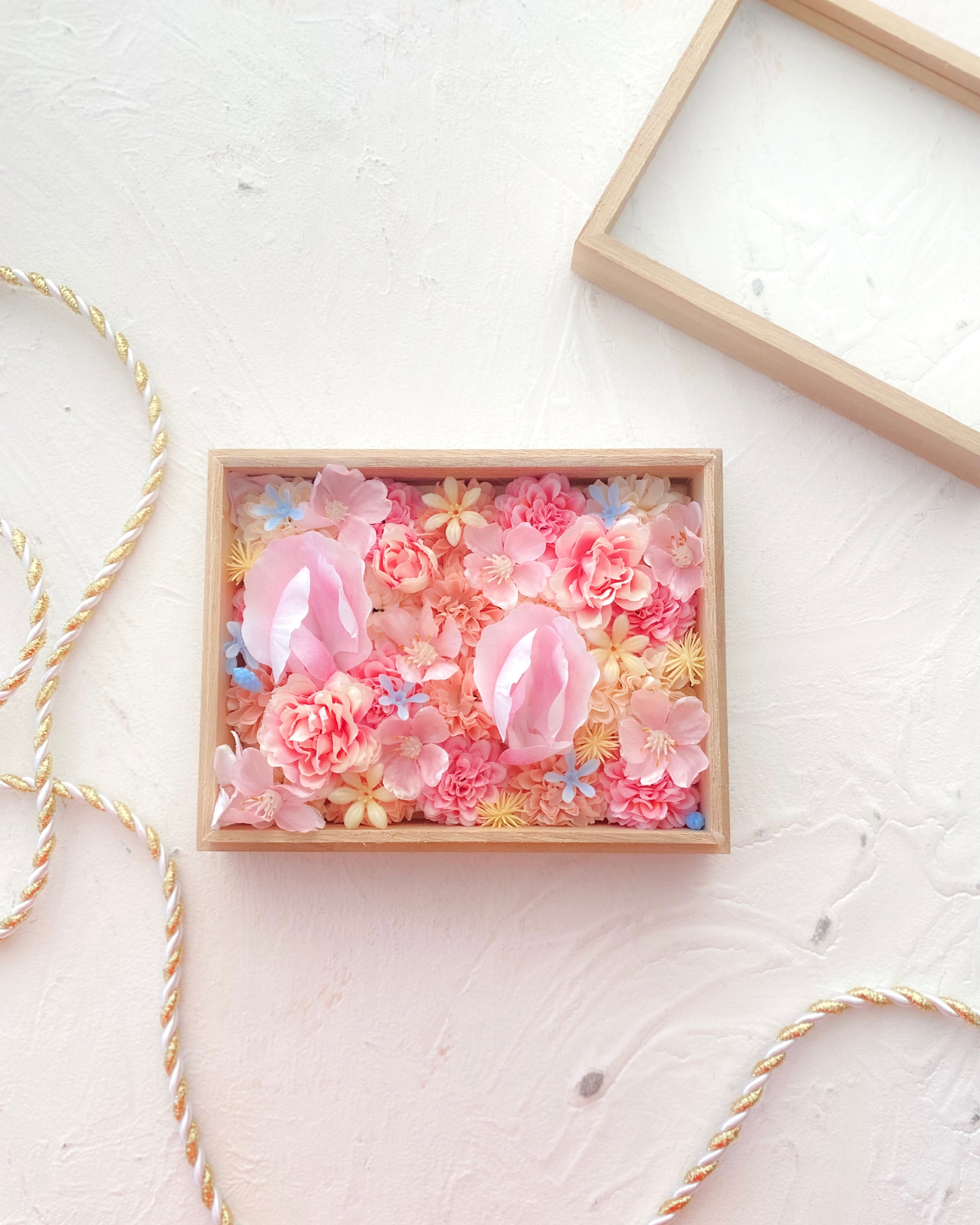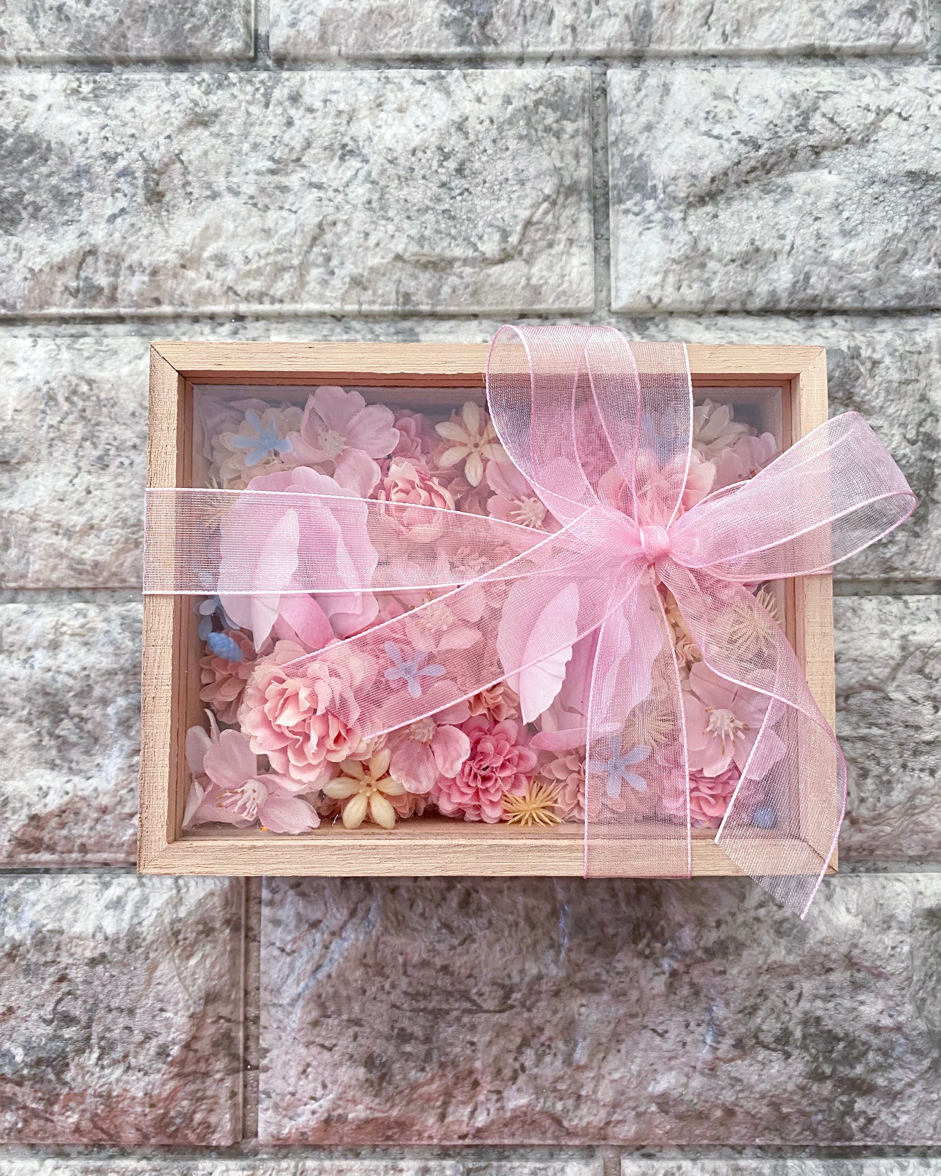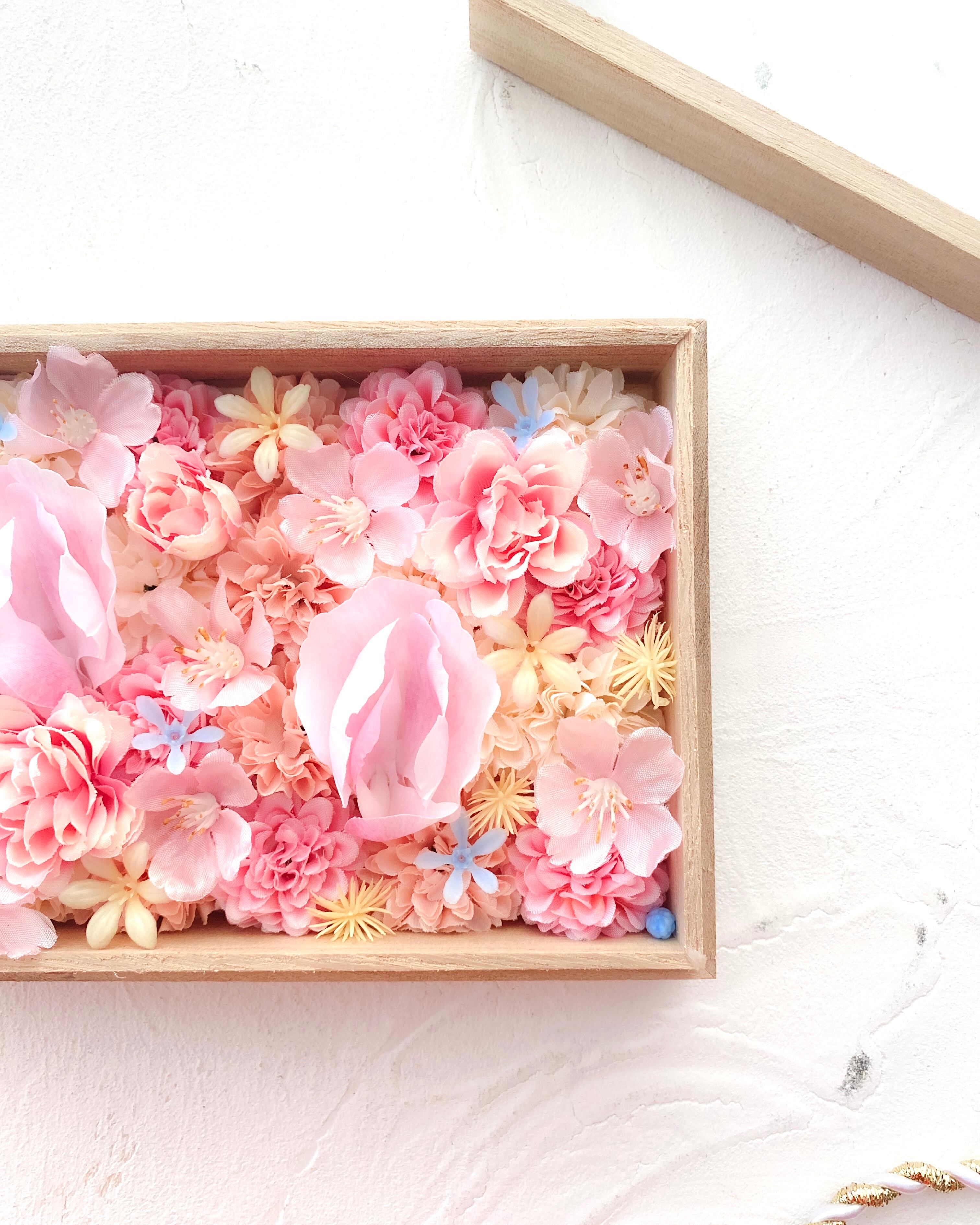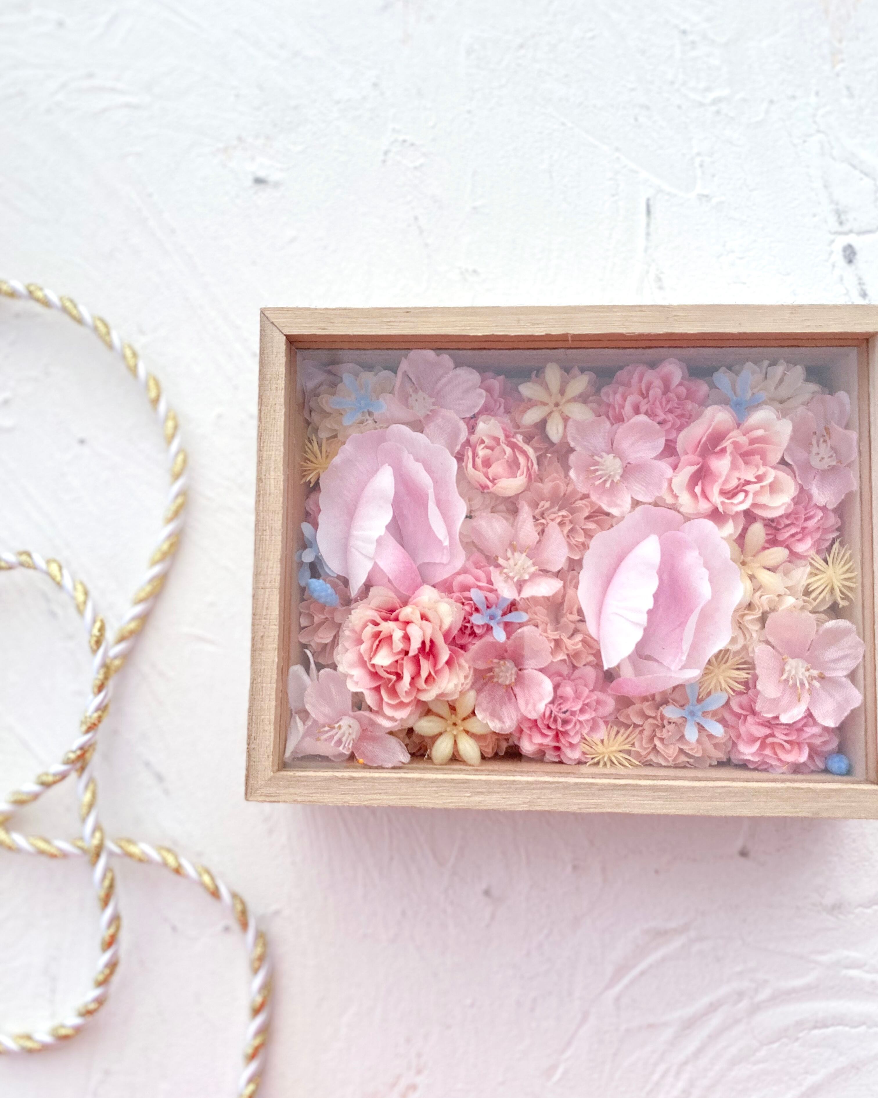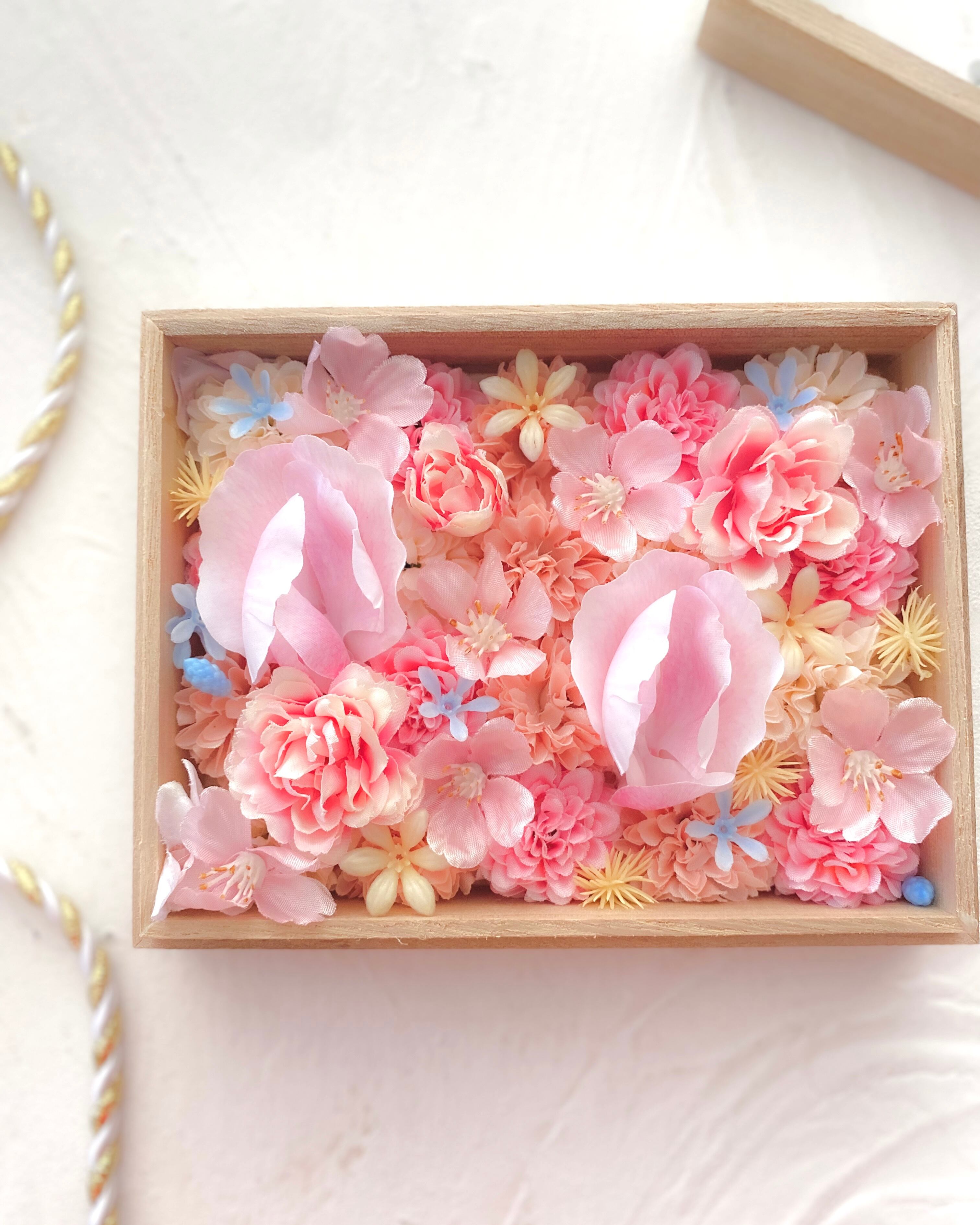 木製の小箱に詰めて、お花の宝箱を作りました♪