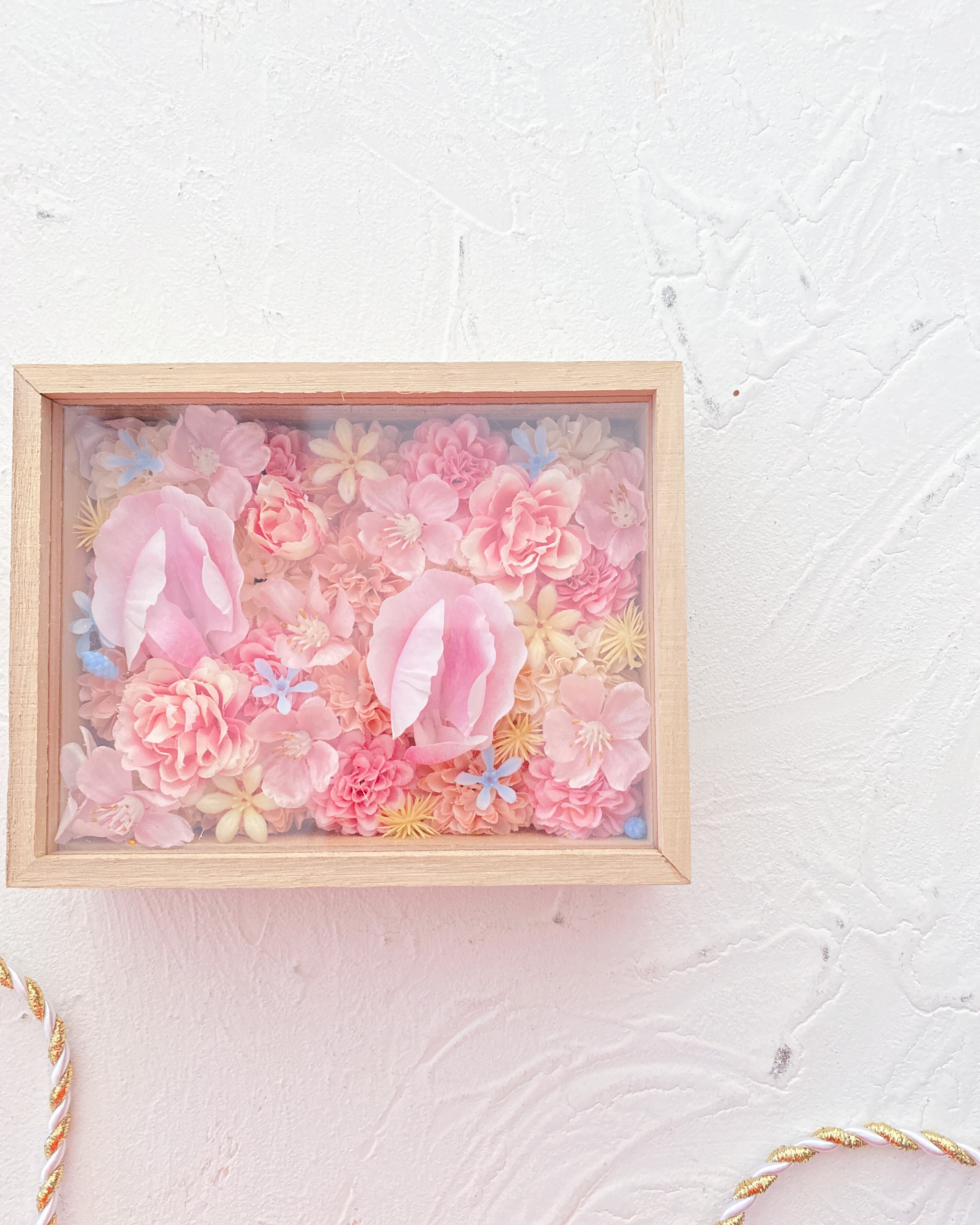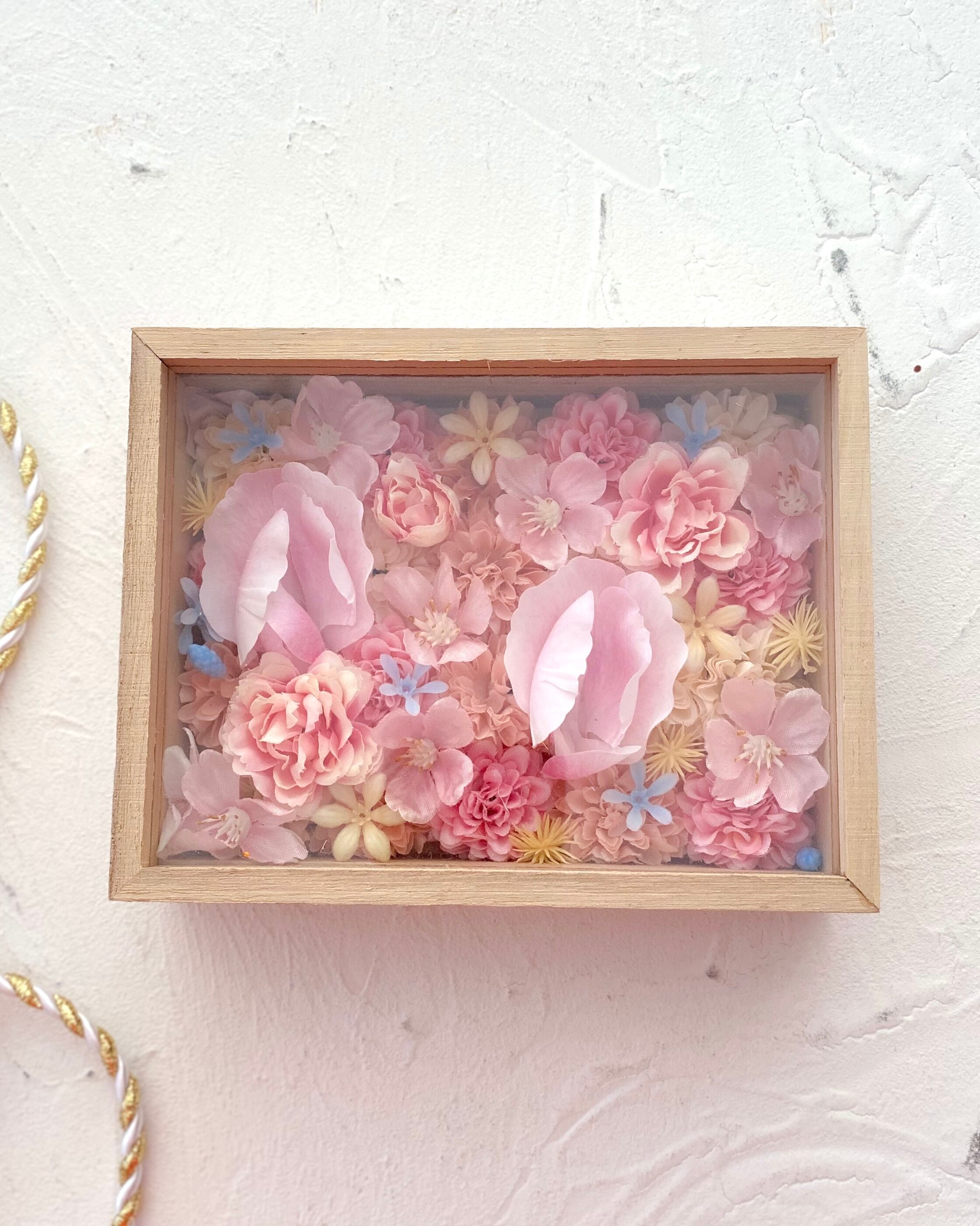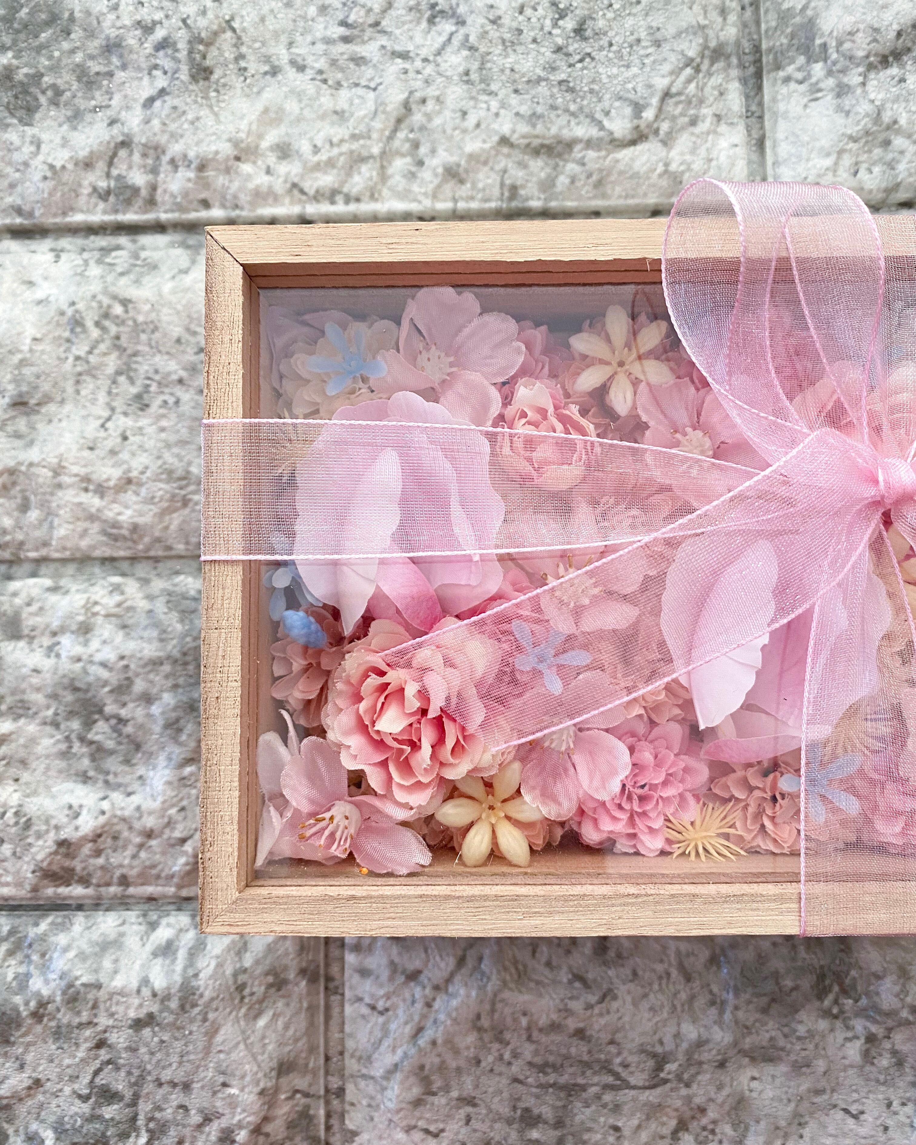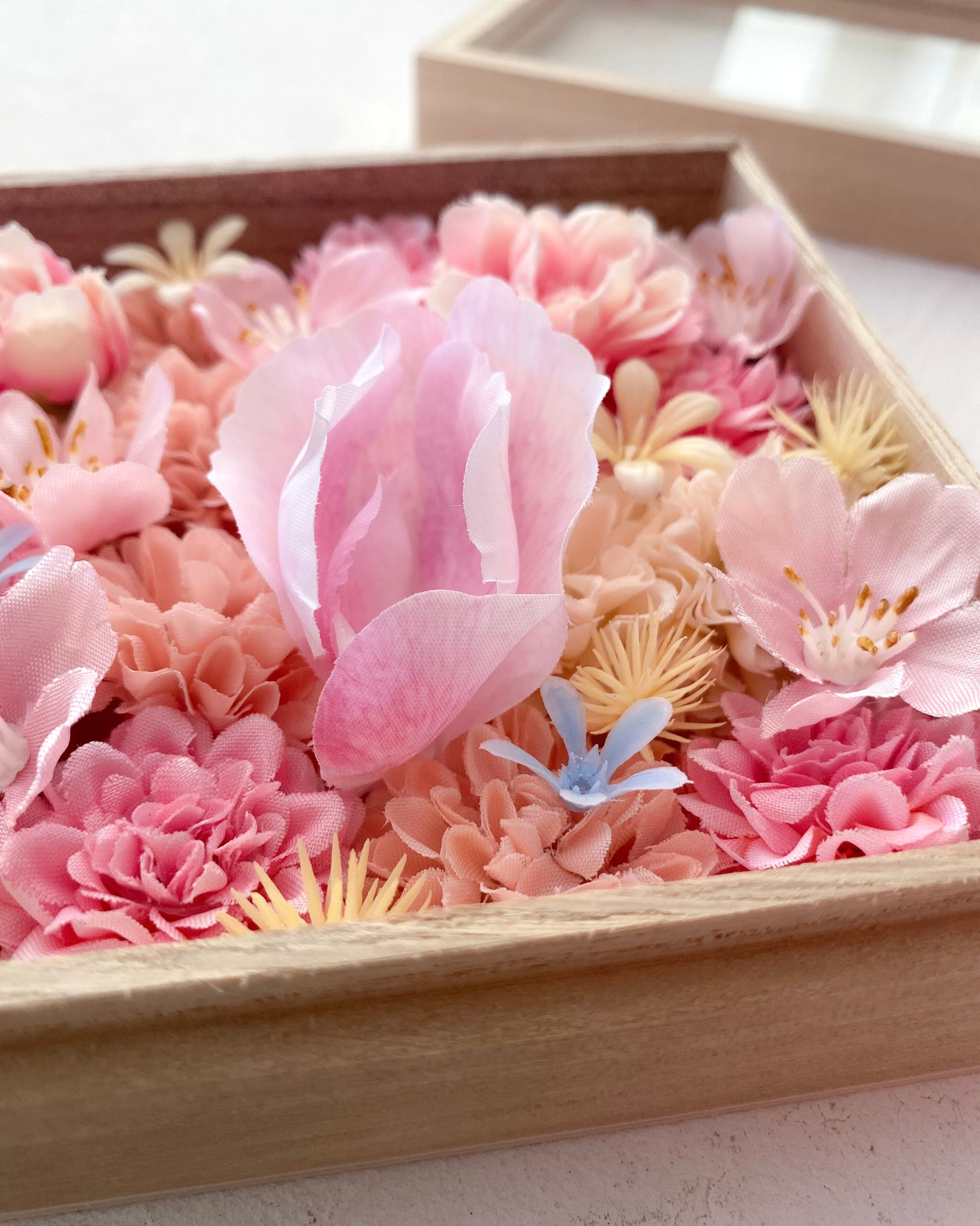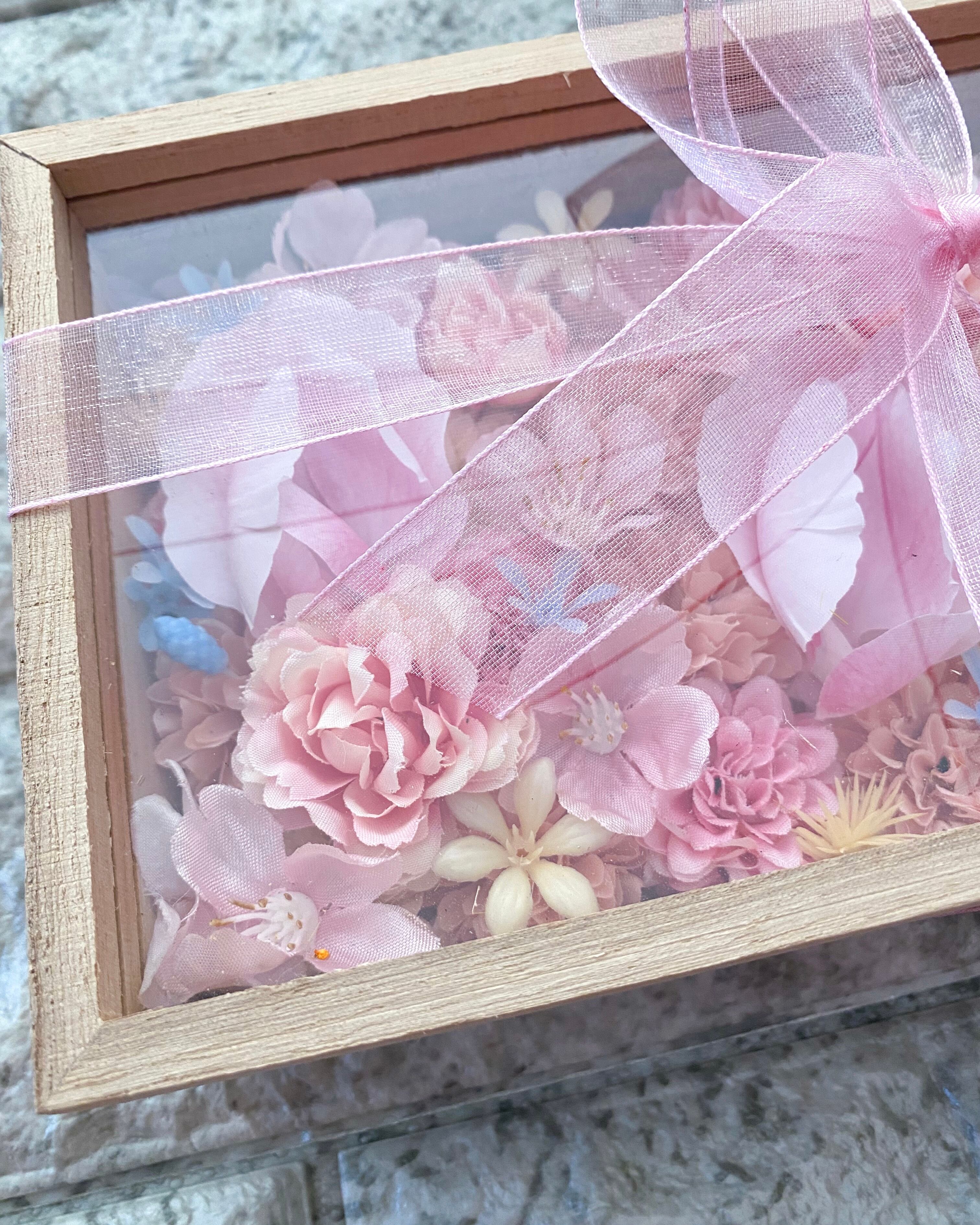 木製の小箱に詰めて、お花の宝箱を作りました♪